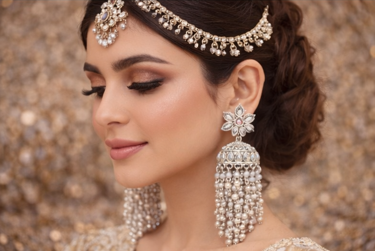The long cascading design creates graceful movement, giving you a royal and sophisticated bridal look. Perfectly suited for lehengas, sarees, suits, and indo-western outfits, these earrings instantly elevate your overall appearance.